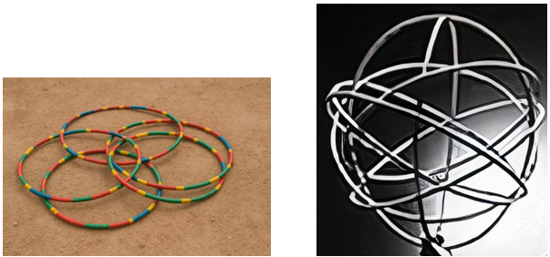 1. Start with six hoops: lay all six hoops on the ground in front of you.