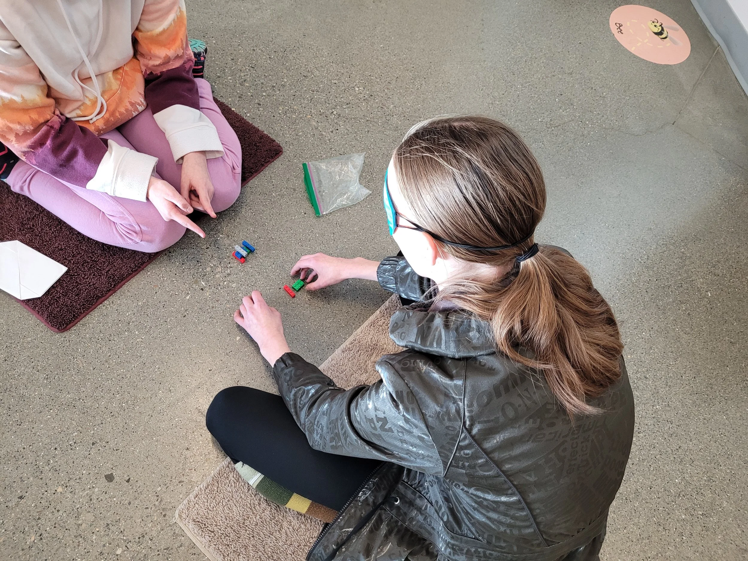 A child waiting for their turn instead of grabbing a toy.