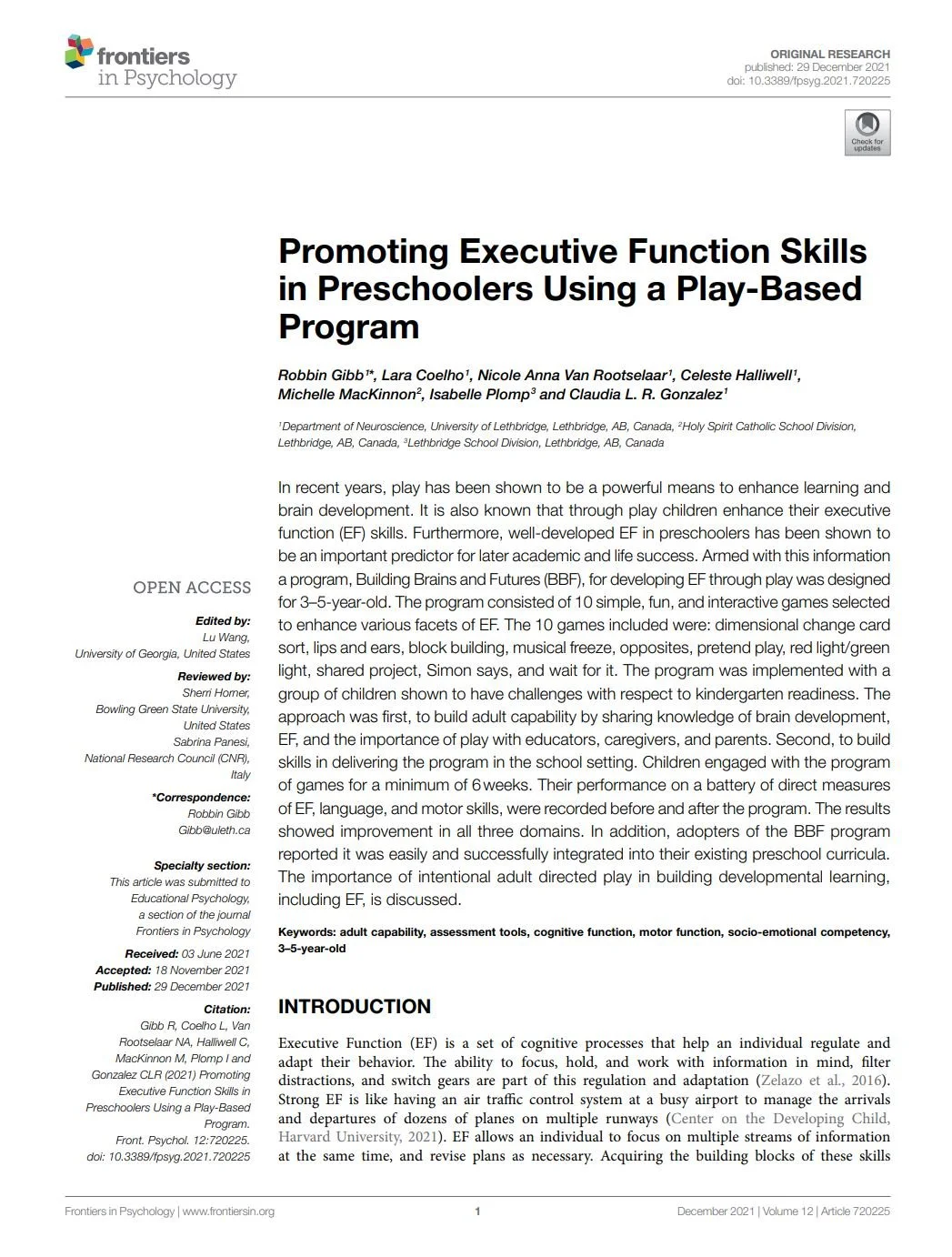 Alberta Teachers Association article on BBT research on strengthening executive function in teens through play. 2024